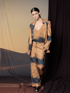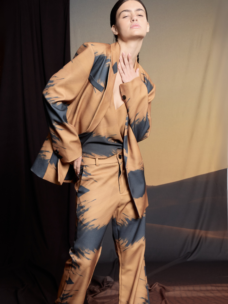 Oversized blazer Single-button front closure Long sleeves Front pockets Inner lining Original print