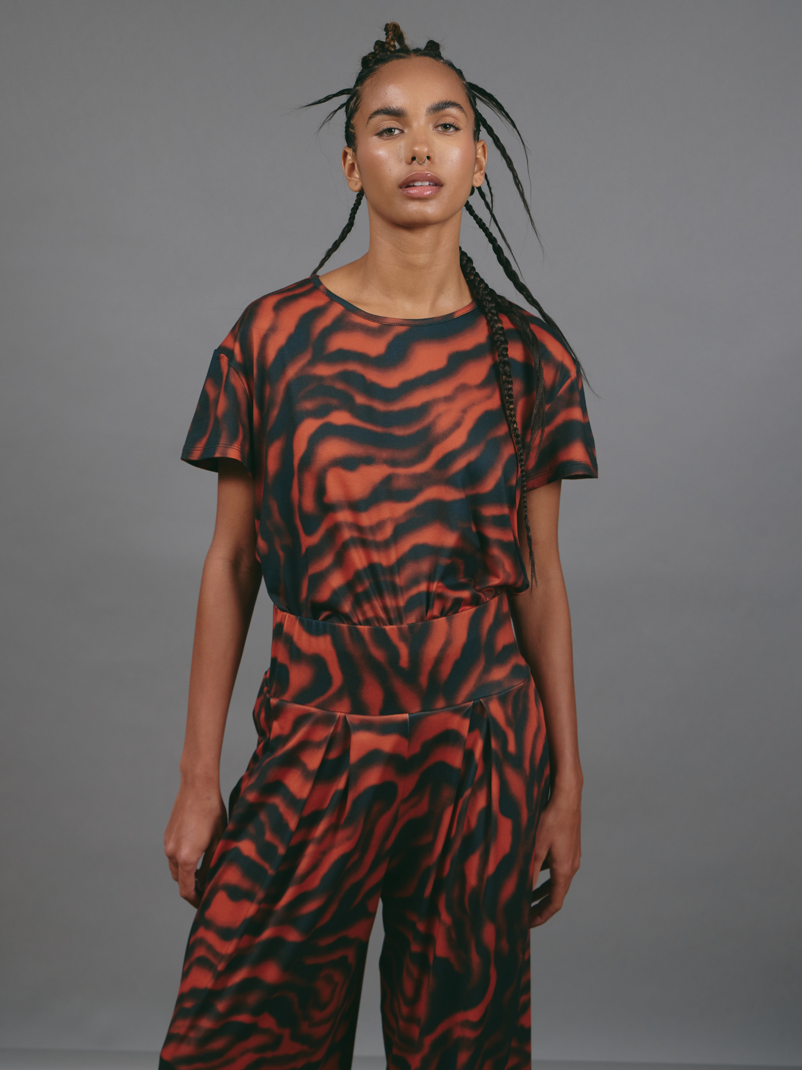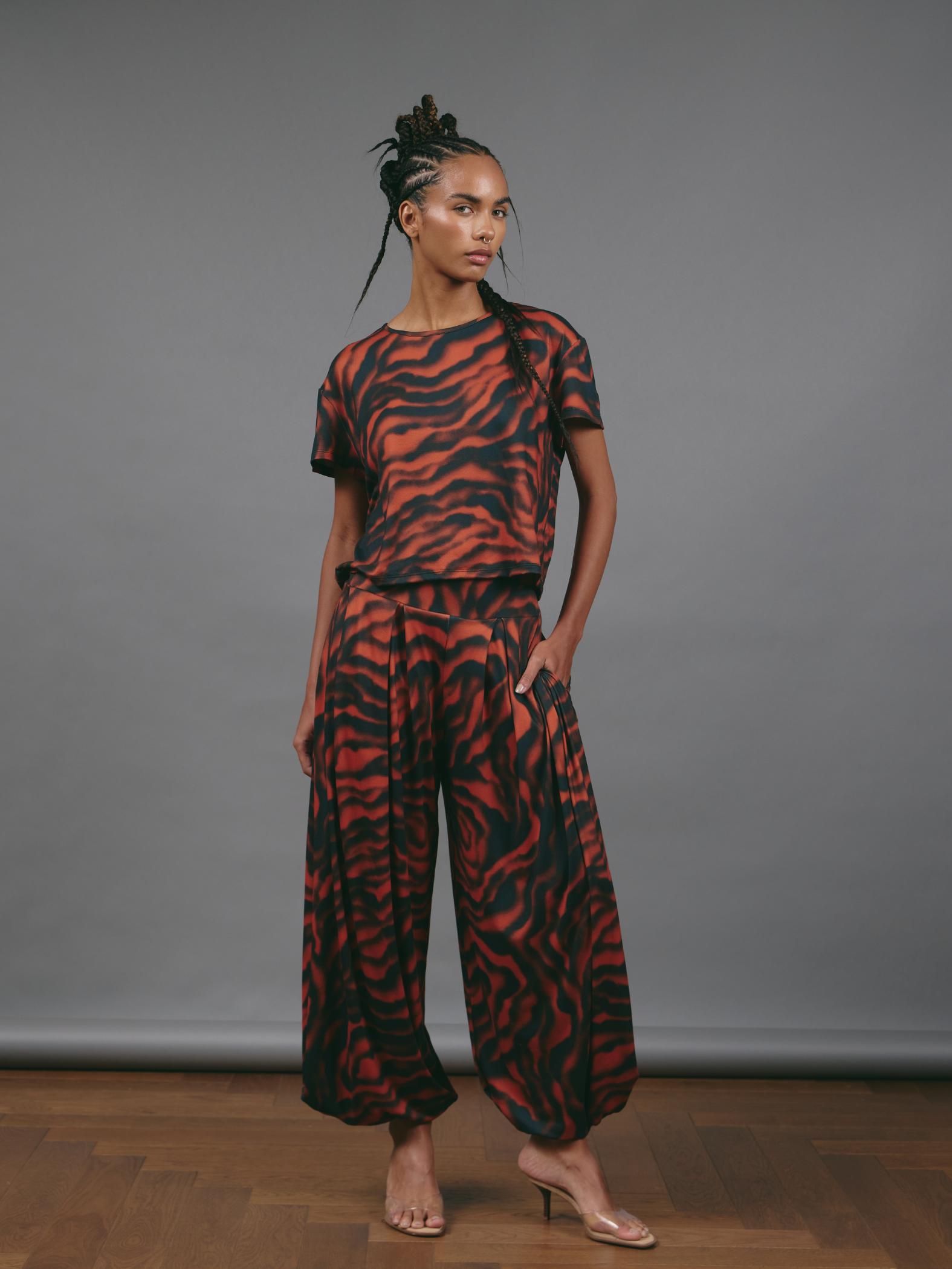Comfortable and versatile, these comfy pants feature an elastic waistband and functional pockets. Crafted from a soft, lightweight fabric, they offer a relaxed silhouette that combines practicality and style—perfect for accompanying you through your day with total ease.