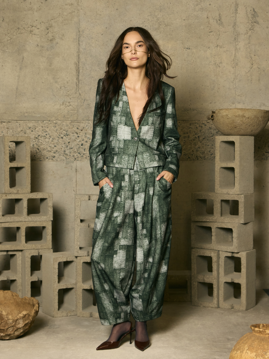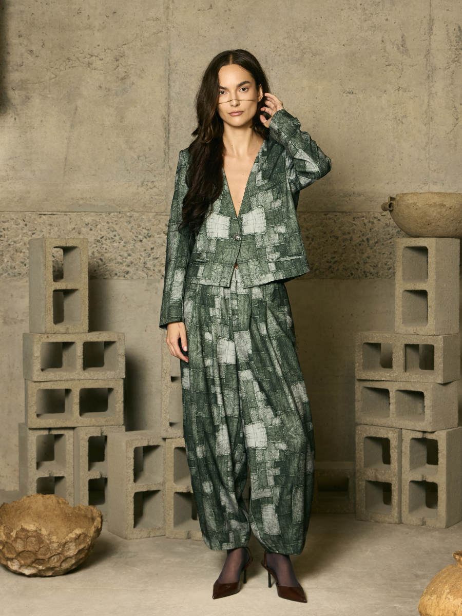 Chic and contemporary, this cropped blazer blends structure with freshness. Its shortened silhouette offers a modern, streamlined edge, perfect for complementing everything from casual high-waisted looks to more sophisticated, defined ensembles.