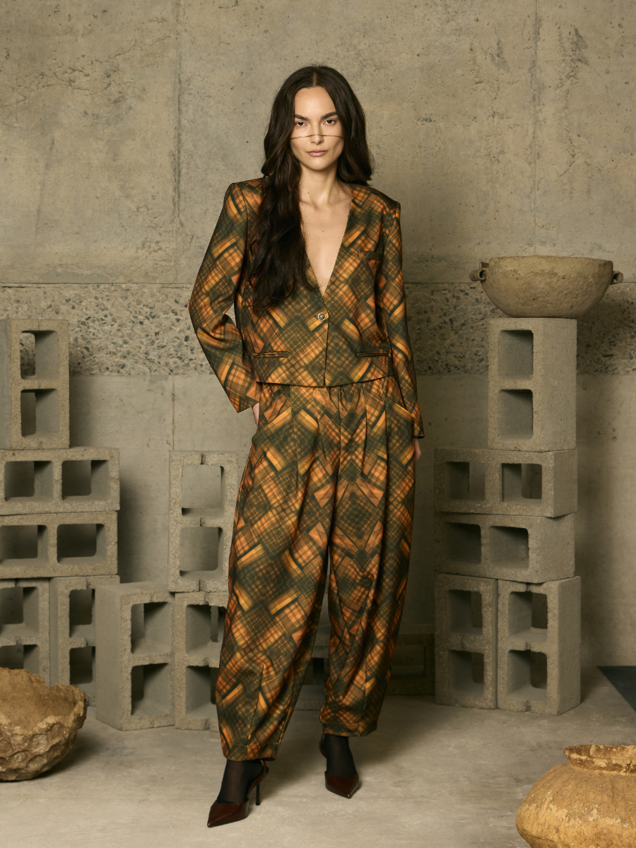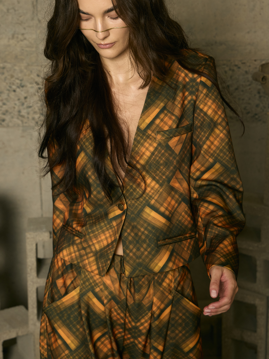 Cropped Blazer - Mocha Tartan