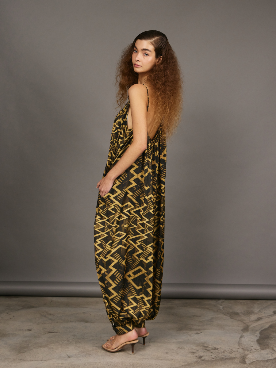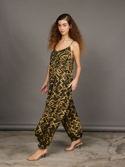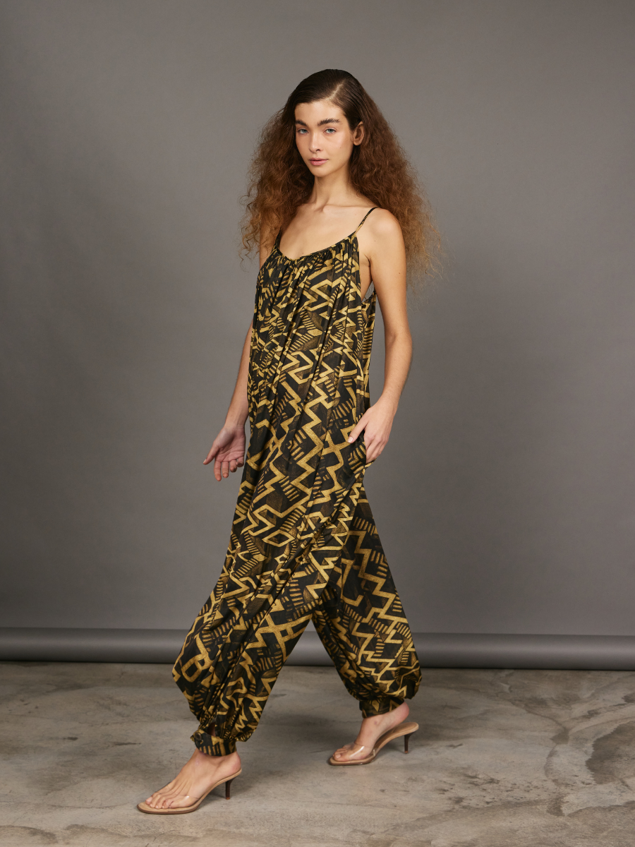 Elegant and modern, this strappy jumpsuit features an extra-wide satin bottom that adds movement and fluidity. Its lightweight and comfortable silhouette makes it easy to style, ideal for creating sophisticated or casual looks with a feminine, chic touch.