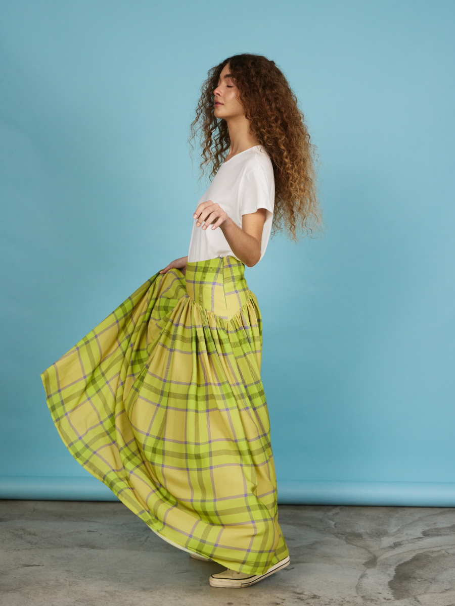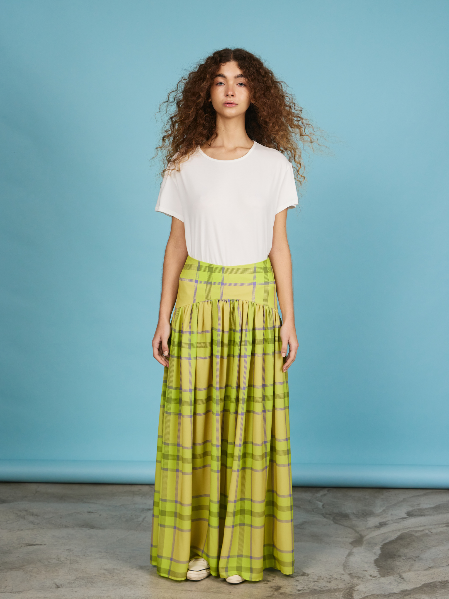 Feminine and elegant, this ruched skirt features a soft drape and natural movement. Designed with a waistband that defines the waist and an invisible side closure, it offers a fluid silhouette ideal for creating sophisticated looks with a delicate touch.