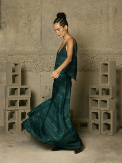 Chic and fluid, this maxi skirt with a sash waistband blends movement with definition. Its relaxed silhouette and cinched waist offer a modern, streamlined edge, perfect for complementing everything from casual looks with basics to more sophisticated and elegant ensembles.