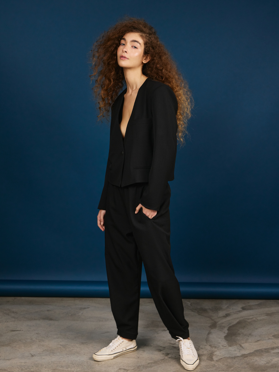 Chic and effortlessly stylish, this cropped blazer features a structured silhouette with defined shoulders and a ligh...