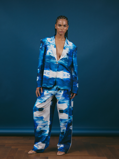 Chic and effortless, this wide one-button blazer blends structure with lightness. Its relaxed silhouette adds a modern, versatile feel, perfect for complementing everything from casual looks to more sophisticated outfits.