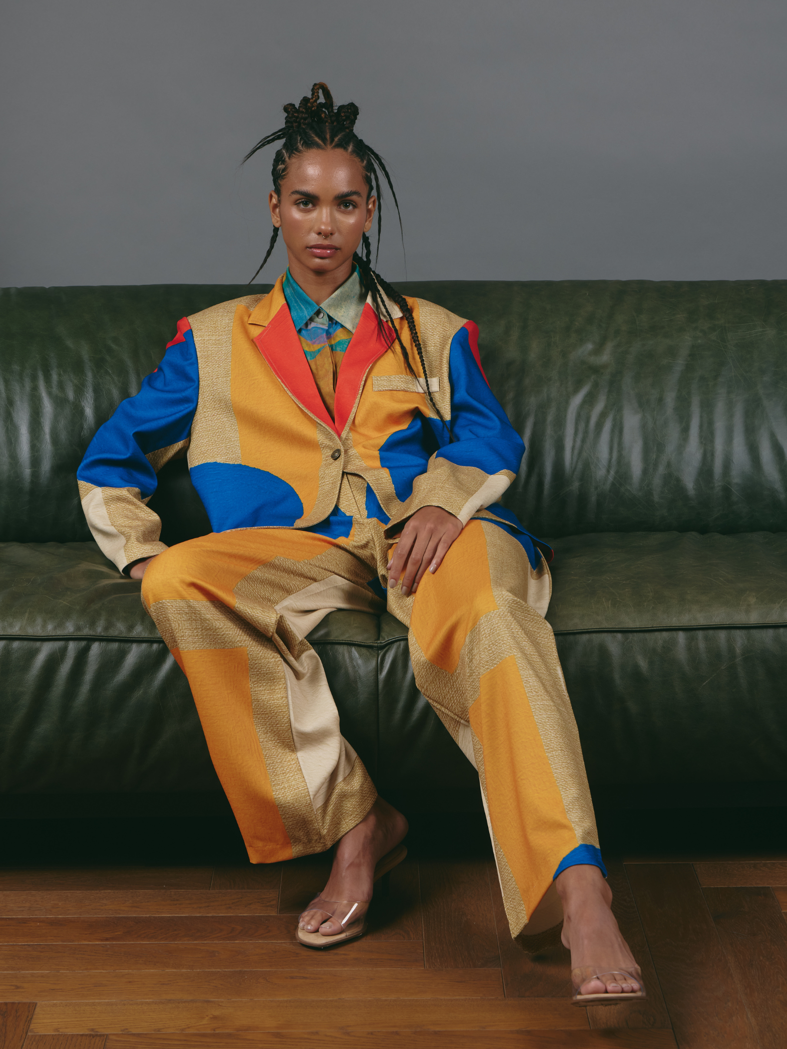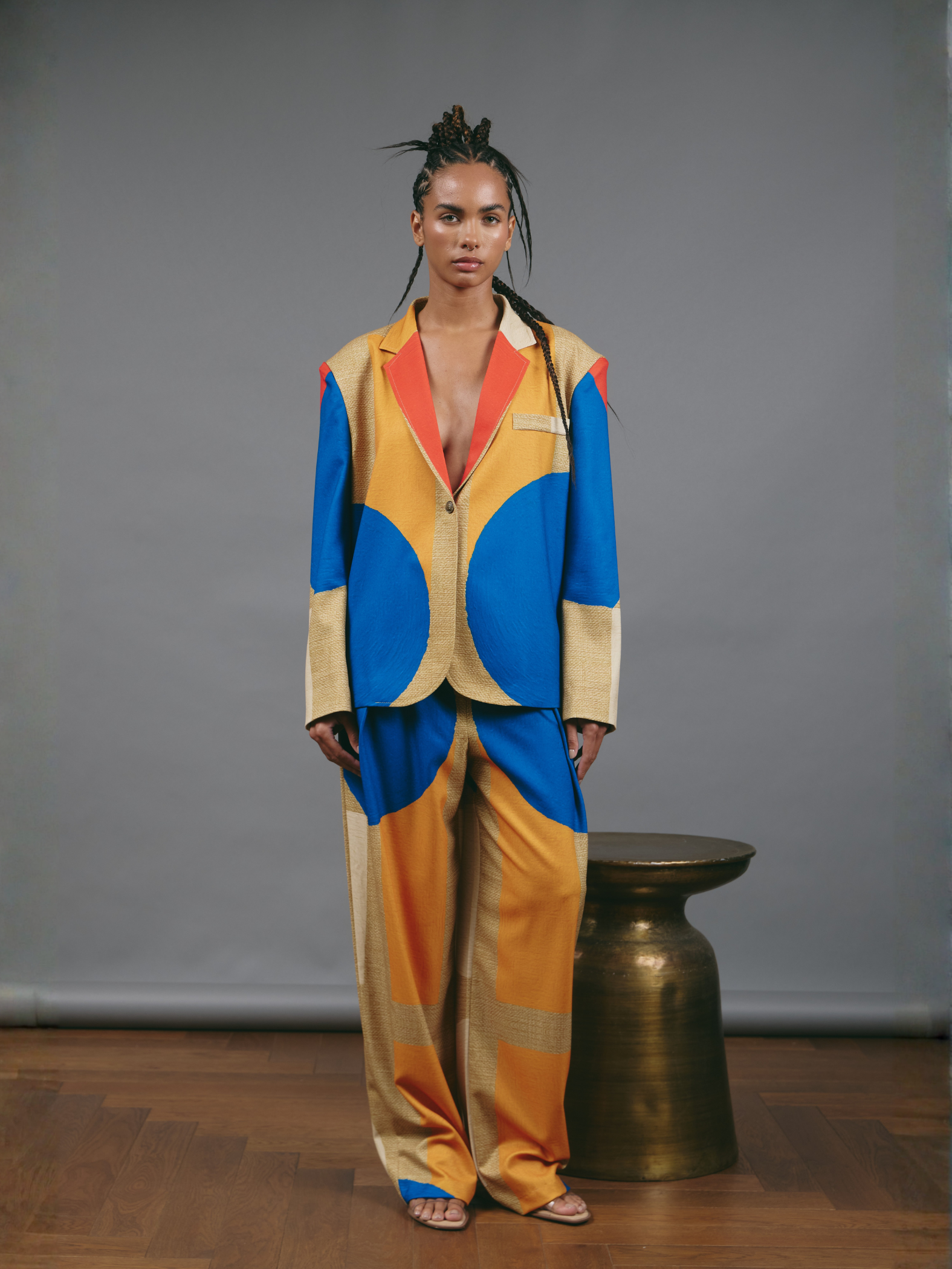 Oversized One-Button Blazer - Color Blocks