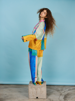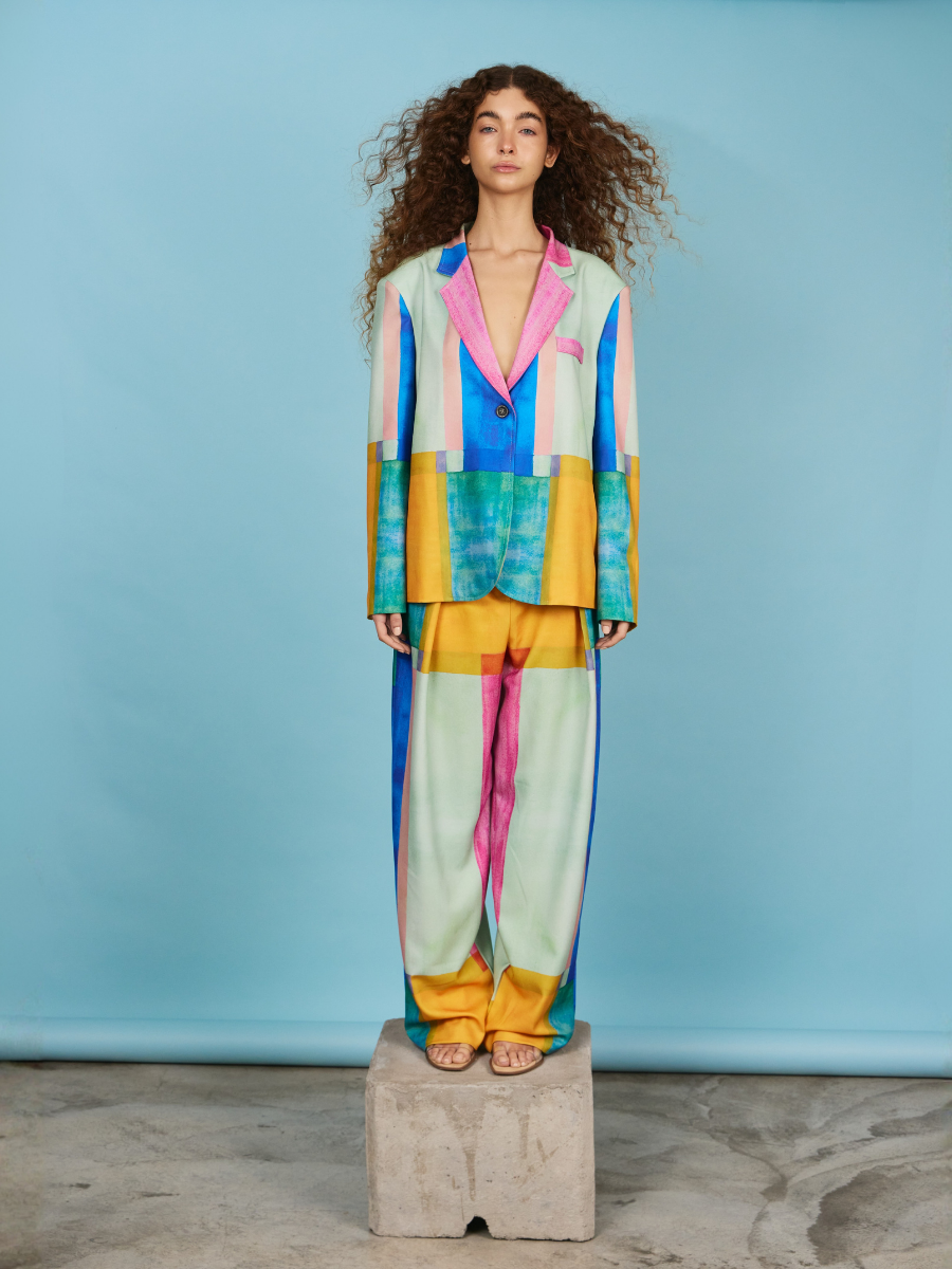 Oversized One-Button Blazer - Multicolor Pixel