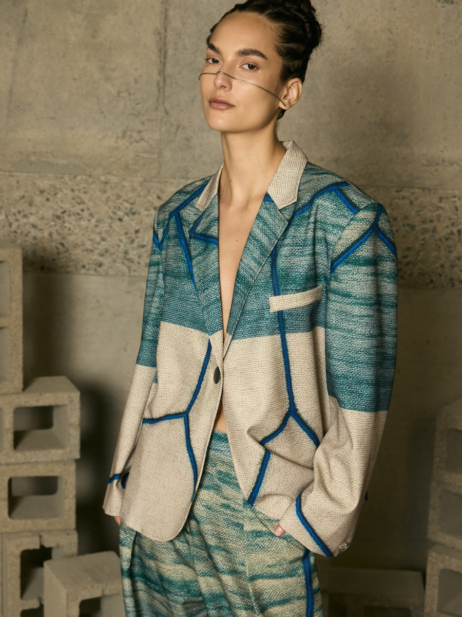 Effortless and elegant, this oversized single-button blazer blends structure with a lightweight feel. Its relaxed sil...
