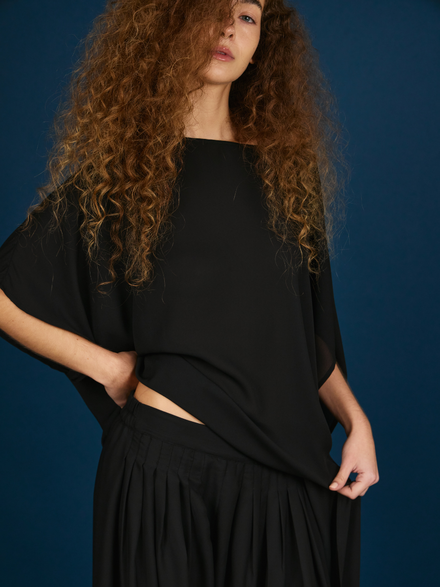 Sophisticated and fluid, these wide-leg pleated pants feature an elegant, flattering design. With functional pockets and an invisible side closure, they offer a clean, modern silhouette, ideal for creating versatile looks with the perfect balance of structure and movement.