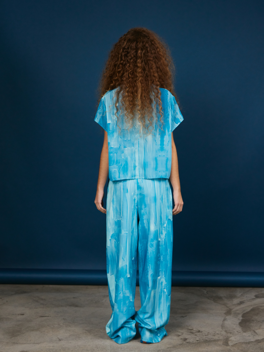 Pleated Pants -Sky Brushstroke