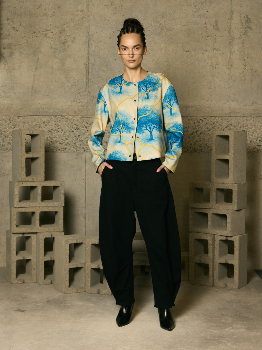 Chic and minimalist, this two-tone jacket blends contrast with balance. Its color-block design offers a modern, dynamic edge, perfect for complementing everything from casual looks with basics to more sophisticated and stylish ensembles.