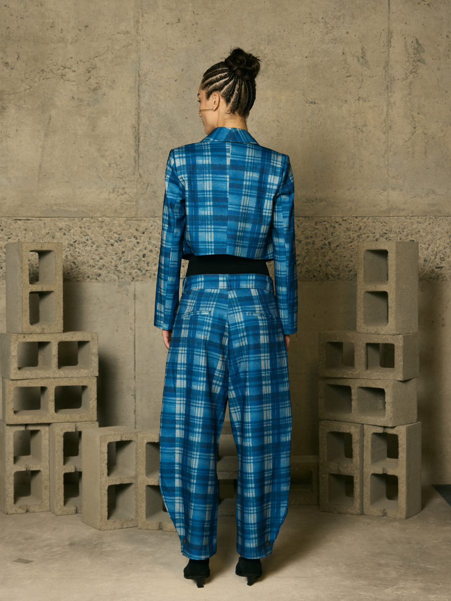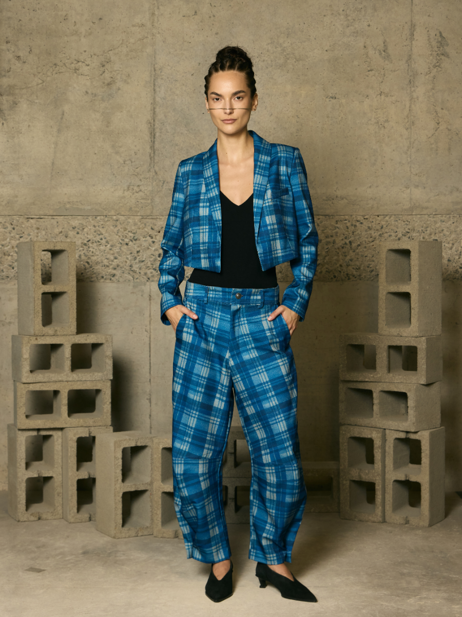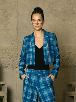 Chic and avant-garde, this super cropped blazer blends structure with boldness. Its ultra-short silhouette offers a modern, architectural edge, perfect for complementing everything from casual looks with high-waisted basics to more sophisticated, trend-forward ensembles.