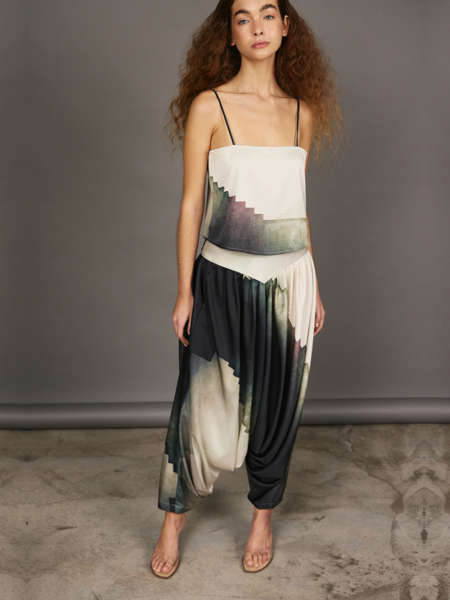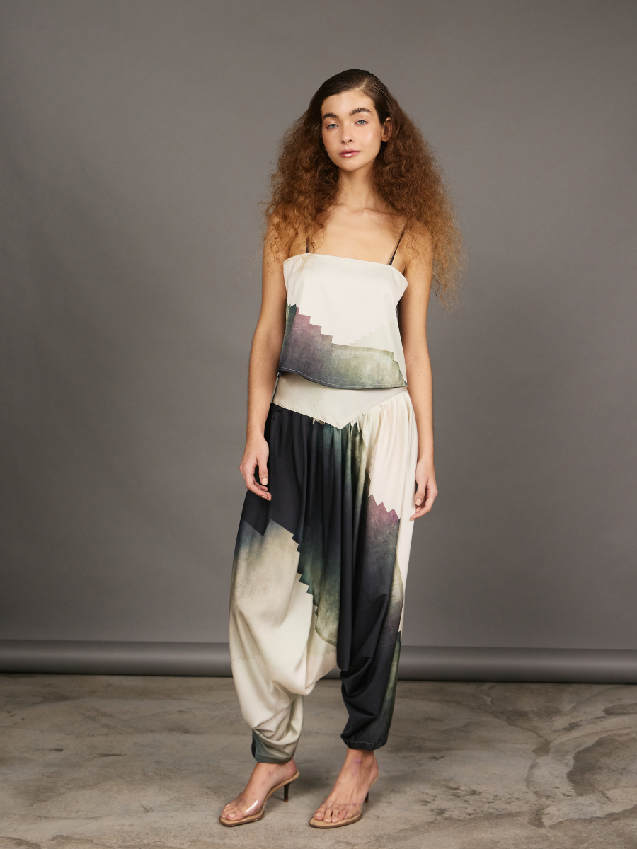 Feminine and elegant, this satin top ties at the back, adding a delicate and sophisticated detail. Its lightweight, flowing silhouette allows for easy styling, ideal for casual or formal looks with a refined and chic touch.