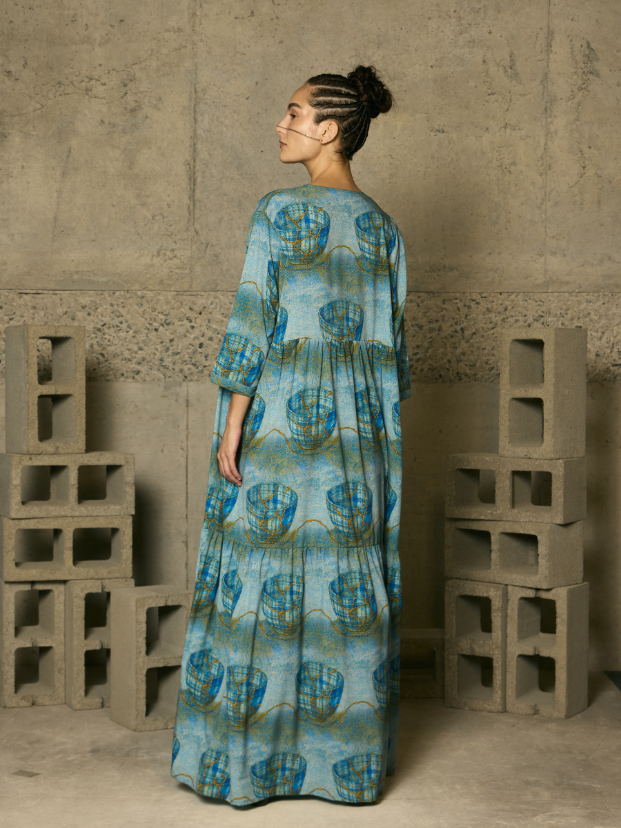 Fluid and sophisticated, this V-neck dress stands out for its gathered detailing, which adds texture and natural move...